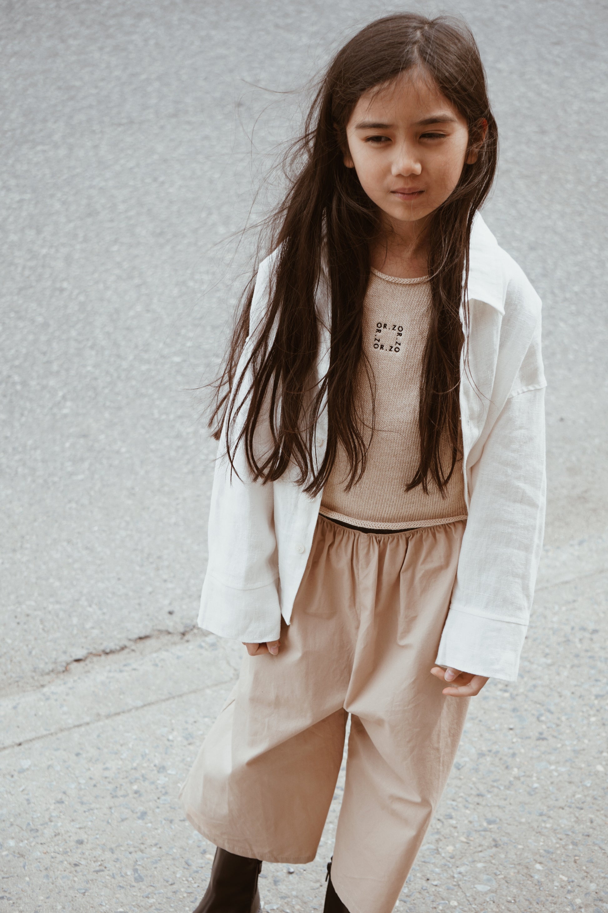 The Butter knit top is our everyday comfort top. With a wide boat neckline and straight body. Made from 100% cotton knit and features our signature embroidered Orzo Studios logo.