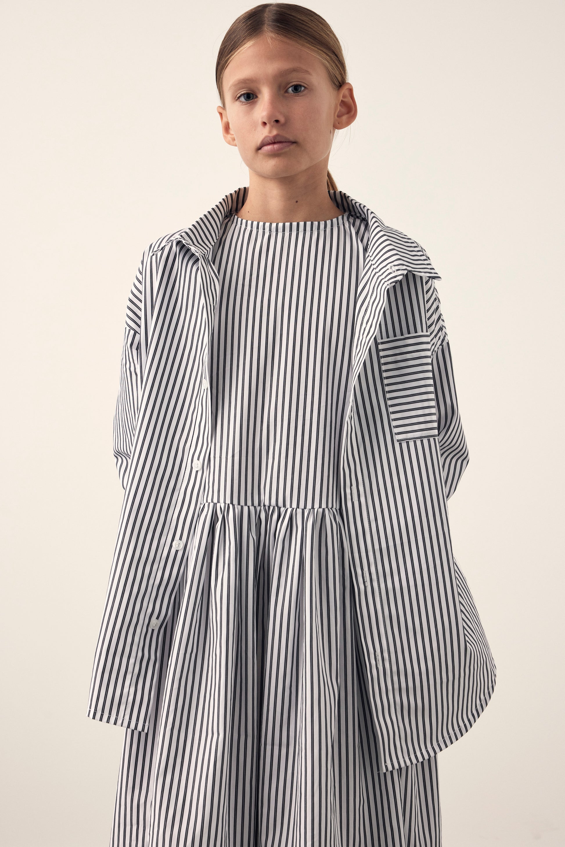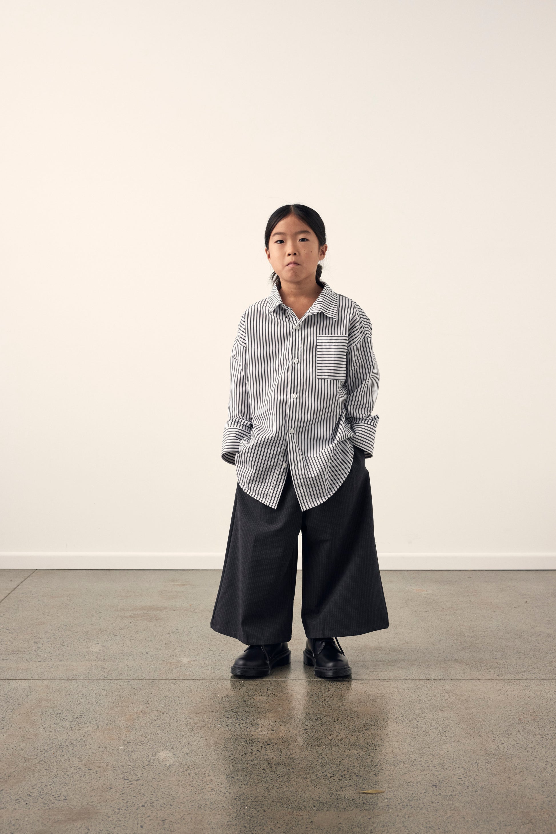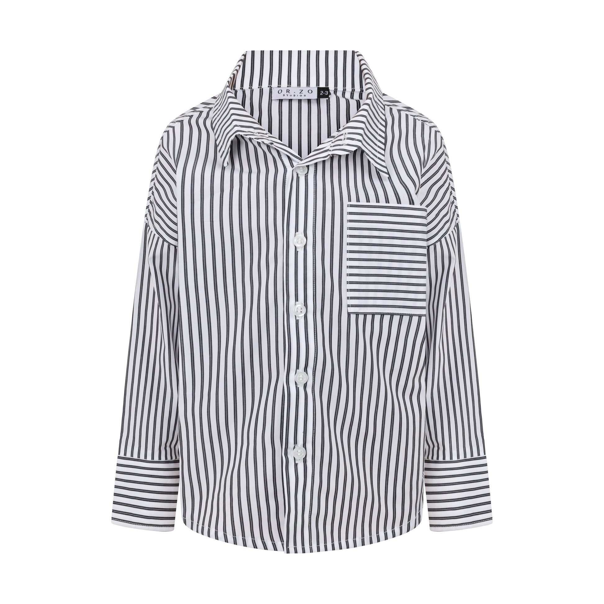 Oversized body shape - High low hemline - Button up - Relaxed sleeve and wide cuff -Front pocket - 100% cotton - Black and white stripe - Cold hand wash - Unisex style