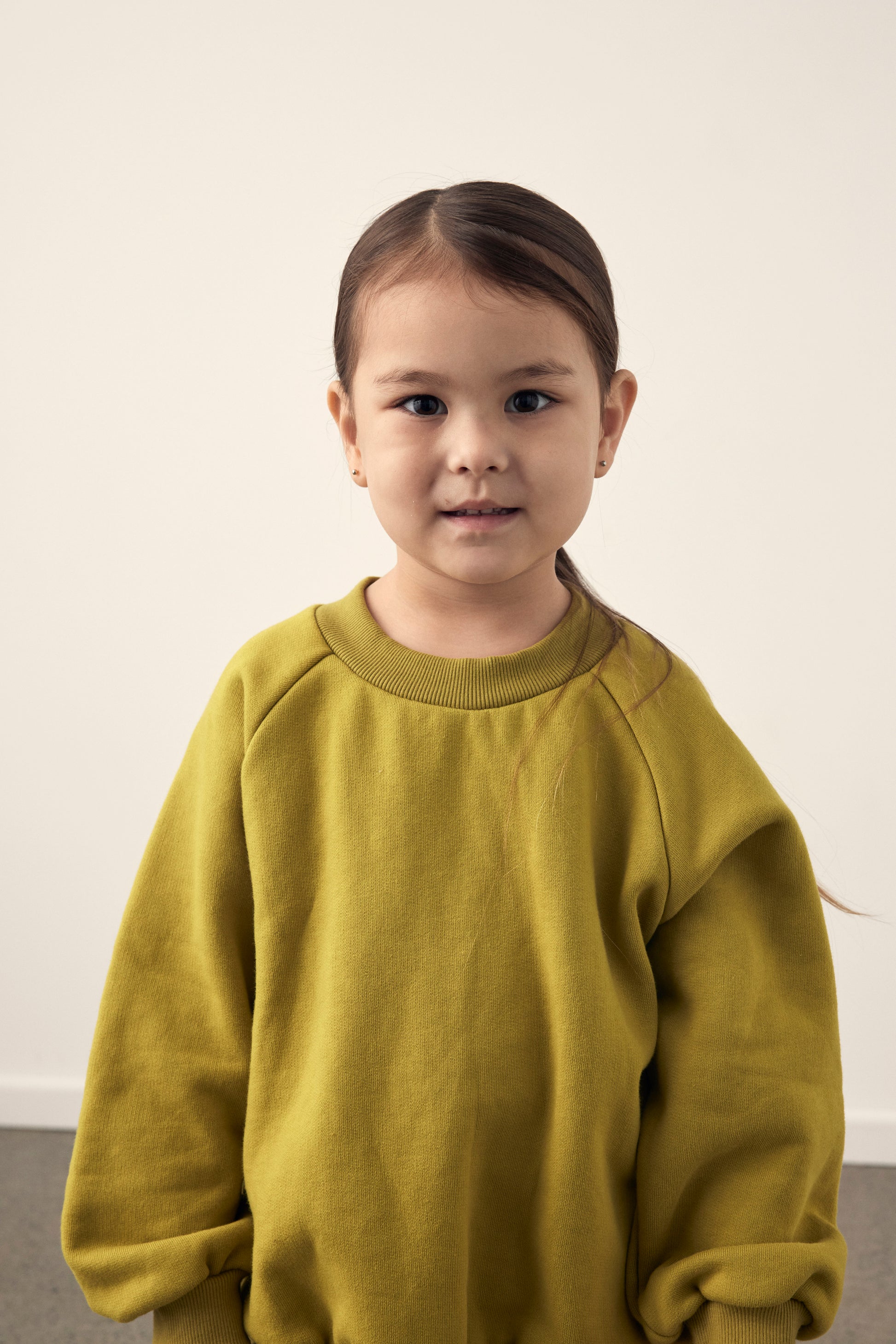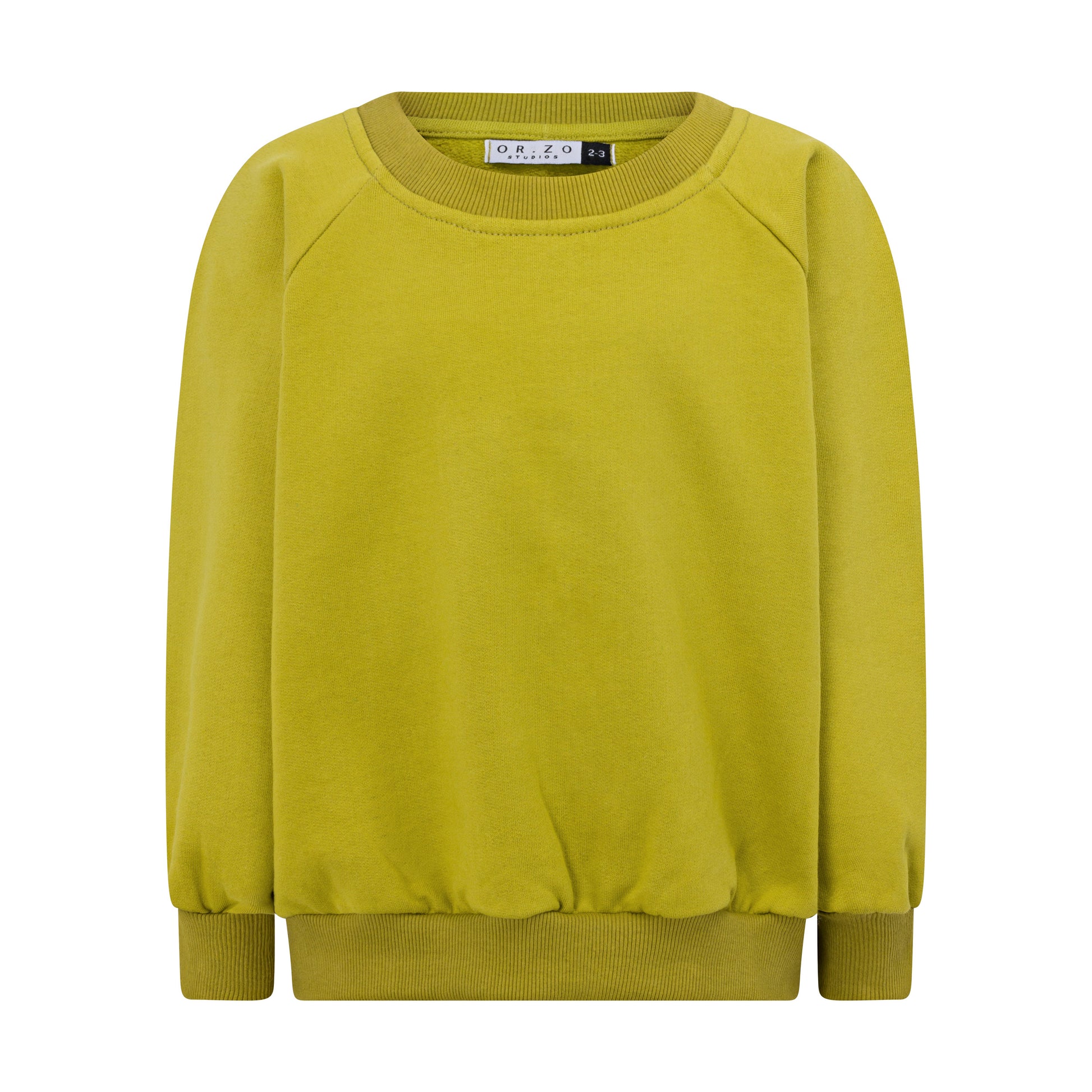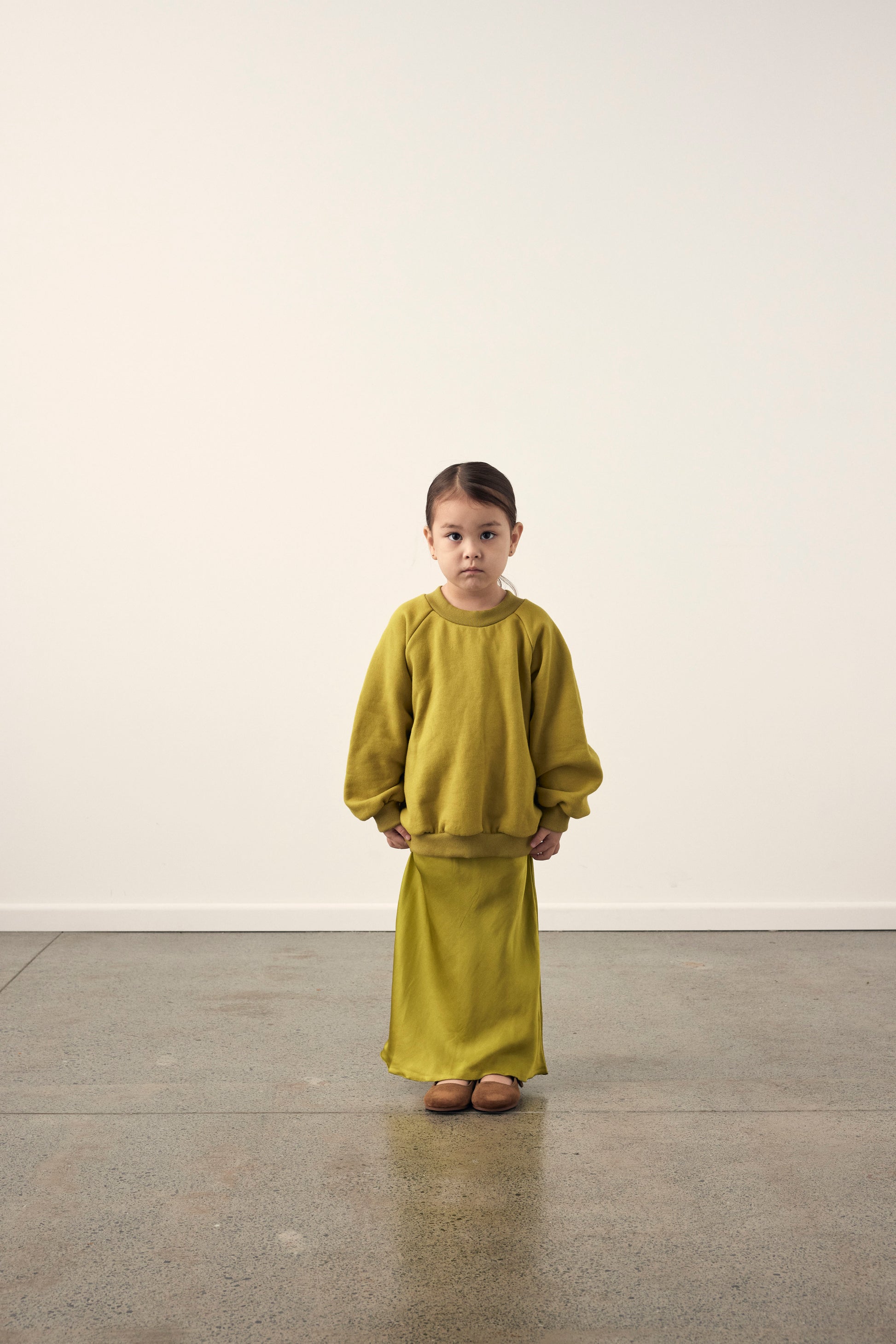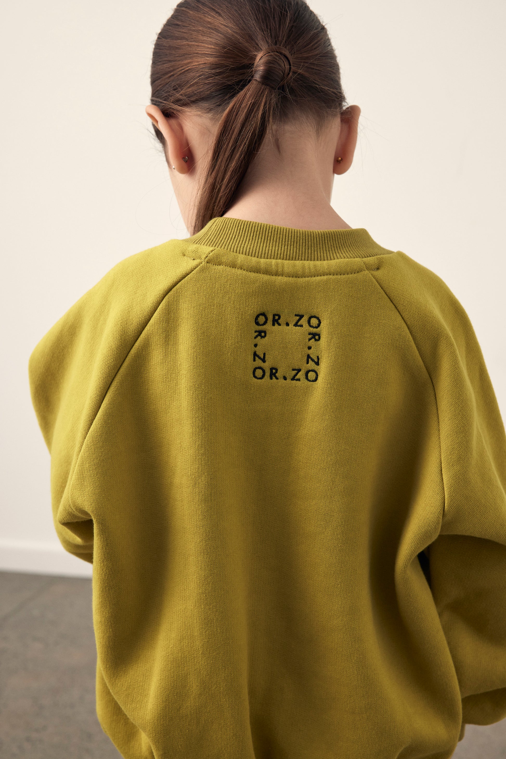 The Farro sweater is an oversized silhouette with round neckline. Made using super soft fleece and hand dyed in citrus. The Farro sweater features back neck embroidery detailing.