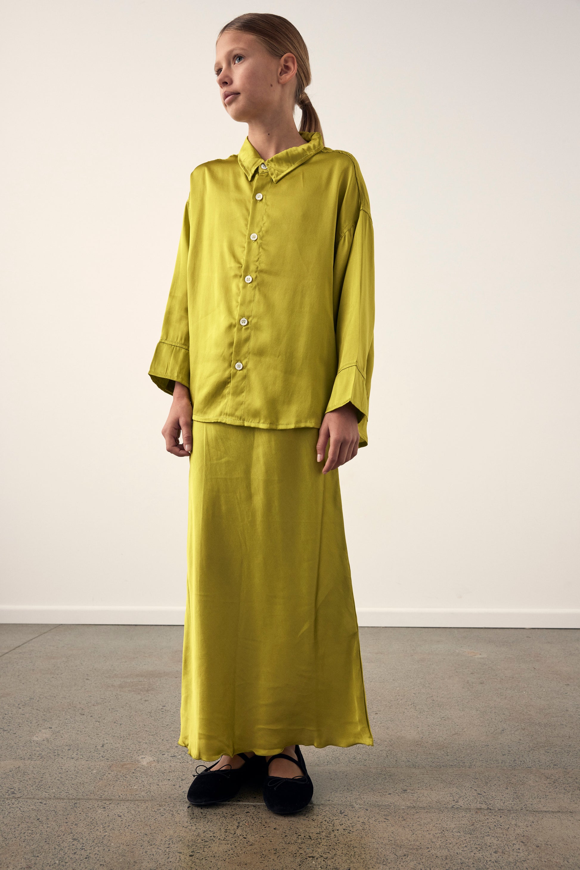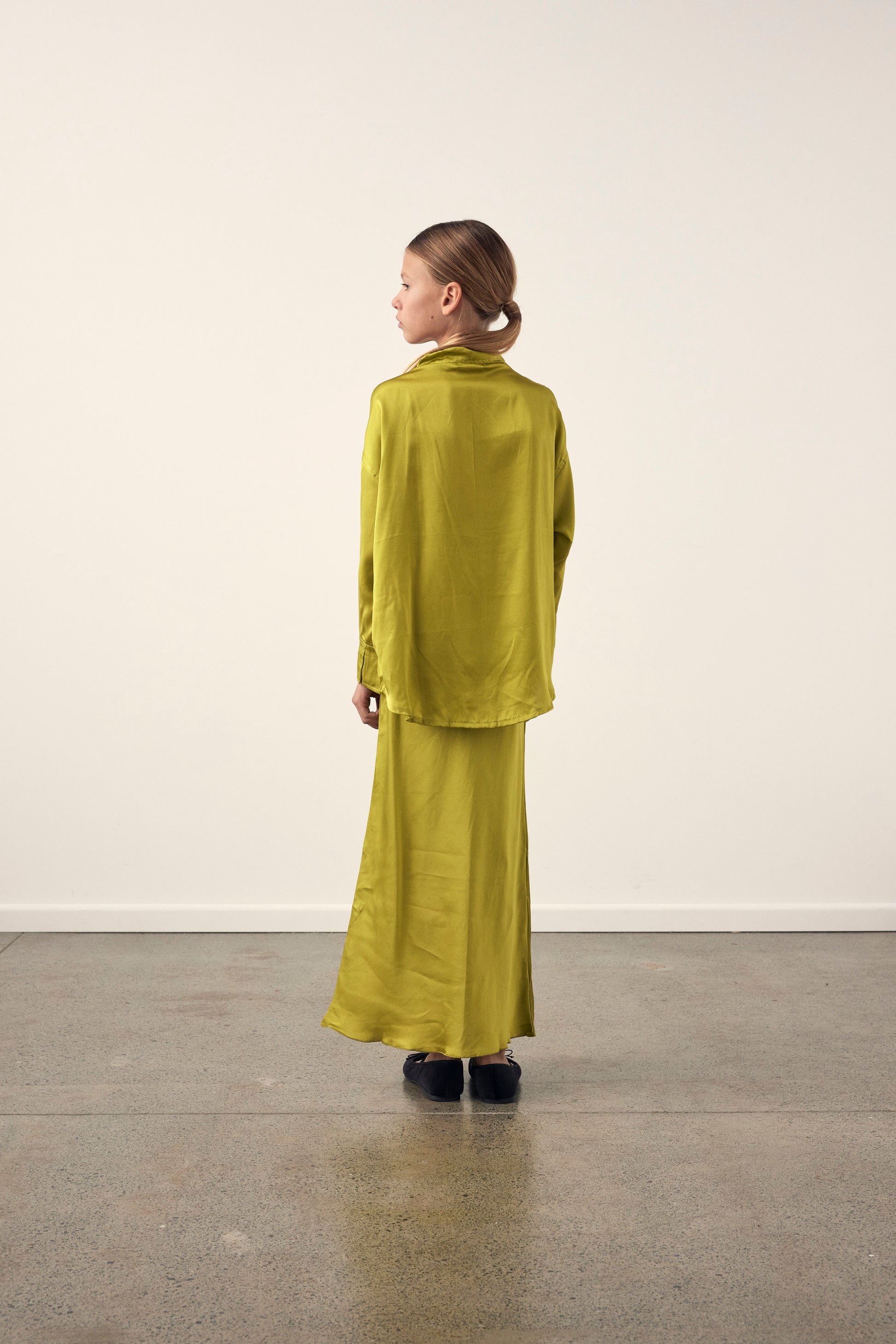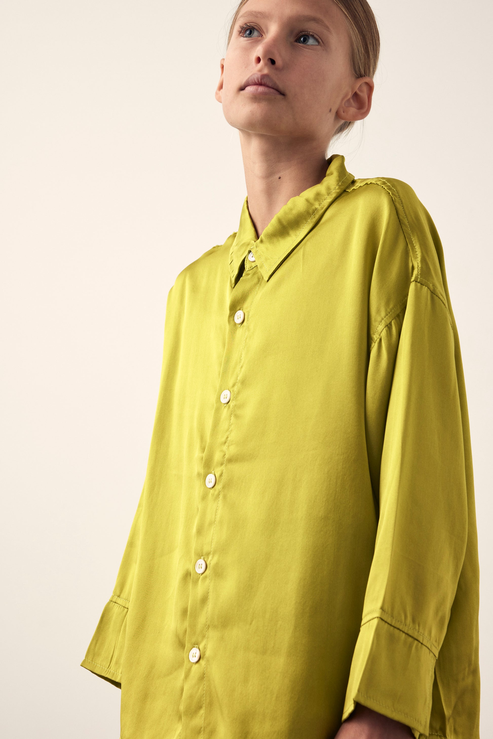 The Filomena shirt is an elevated shirt featuring an oversized body shape, high low hemline and functional buttons. Made from 100% butter soft silk and hand dyed in our signature citrus colour.