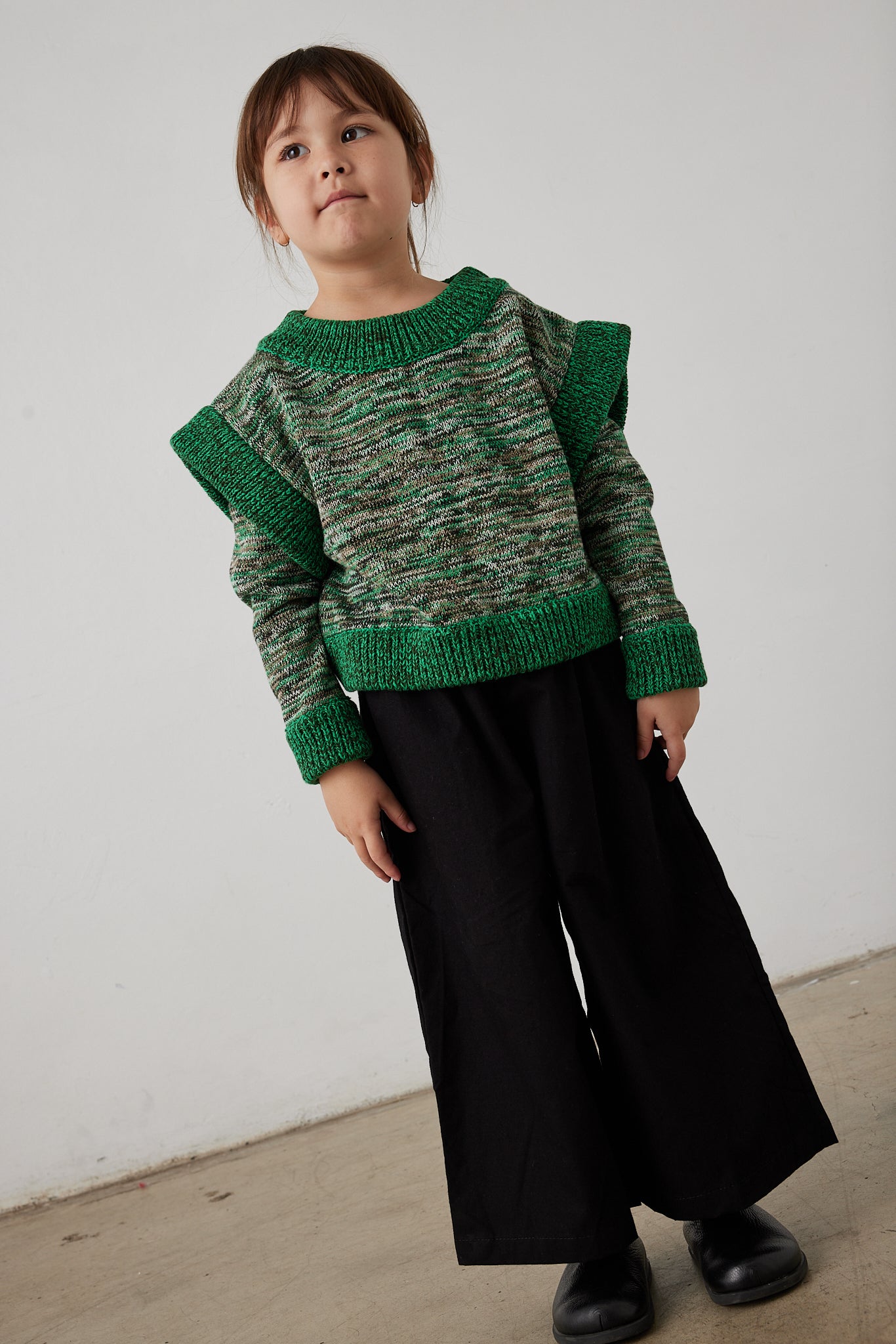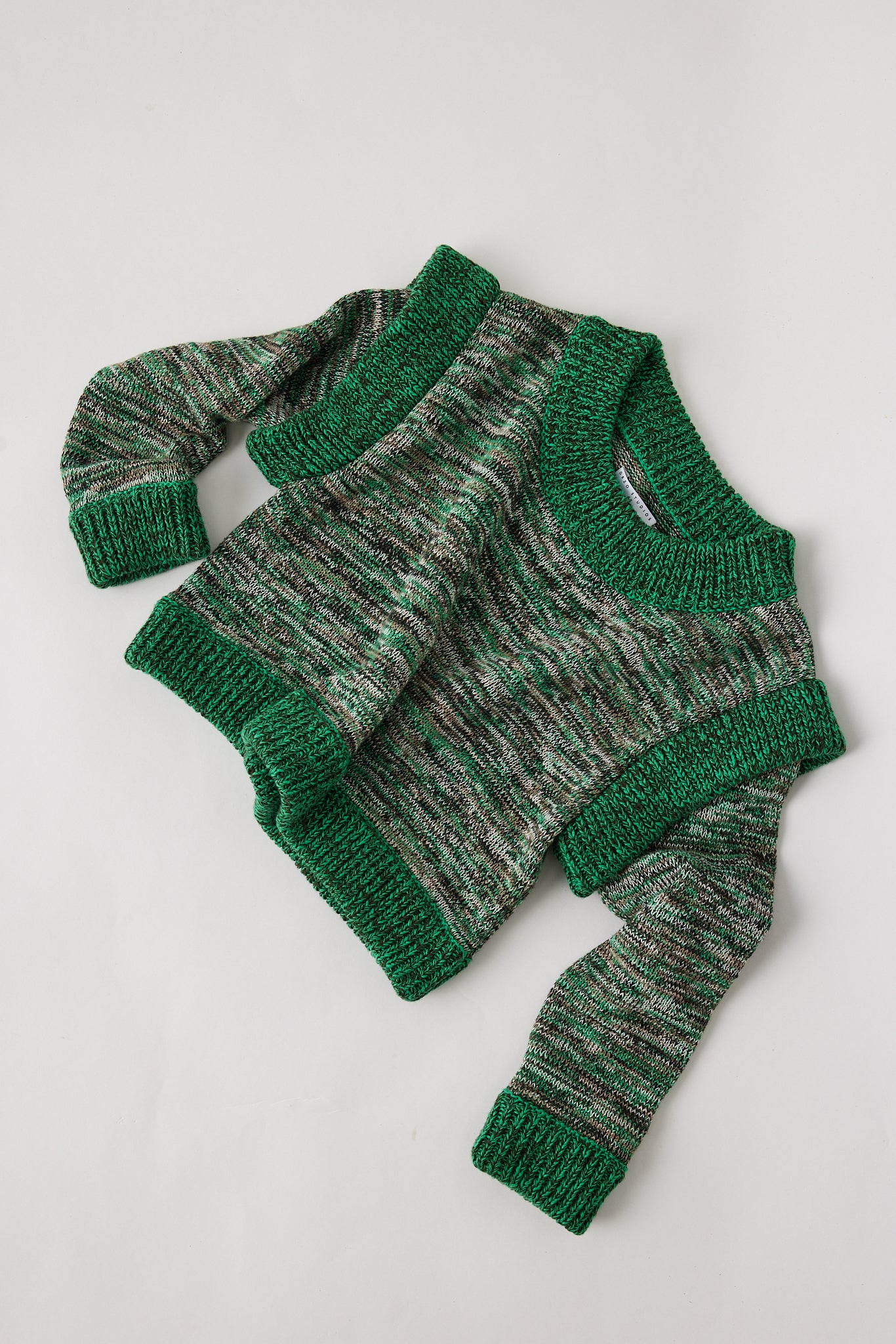 The green Rowse knit sweater is made from 100% cotton. It features a boxy body shape, long sleeves, external thick banding and round neckline.