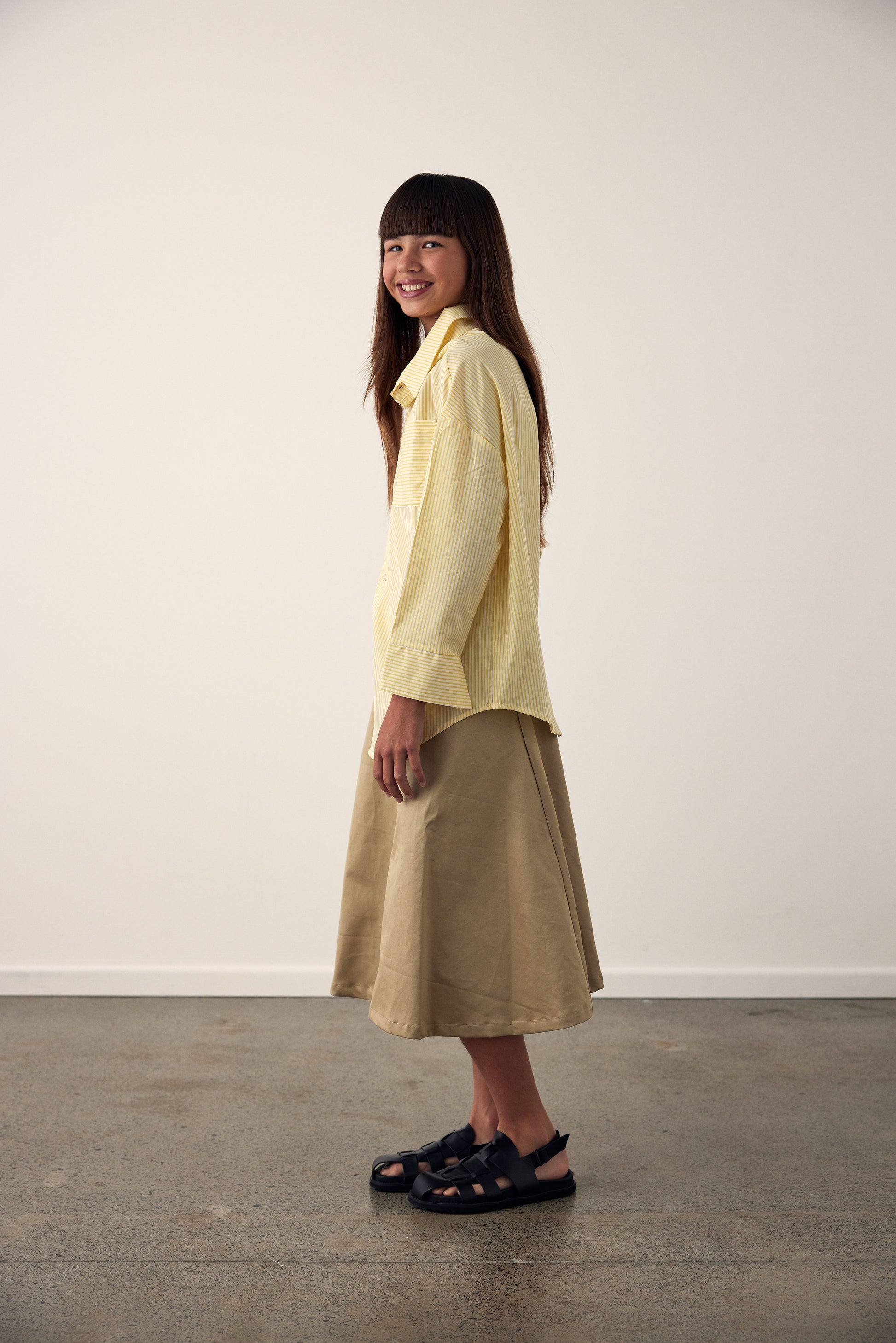 The Jacques is the perfect everyday skirt for all occasions. Made from 100% cotton twill, it features a fixed waist band with back zipper entry and fully functional side pockets. Made from 100% Japanese twill dead stock fabric.