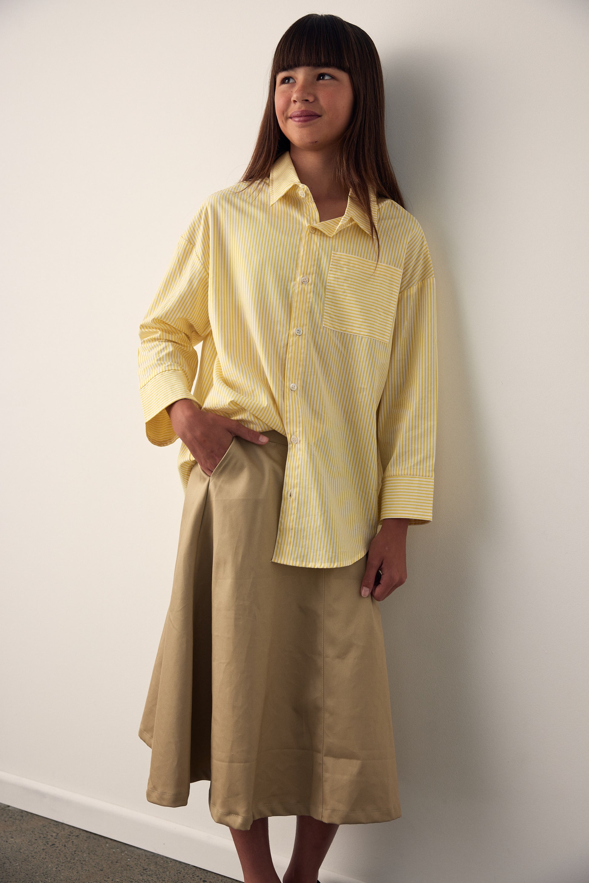 Full A line skirt - Functional side pockets - Back zipper entry - 100% cotton twill - Chino brown - Cold hand wash
