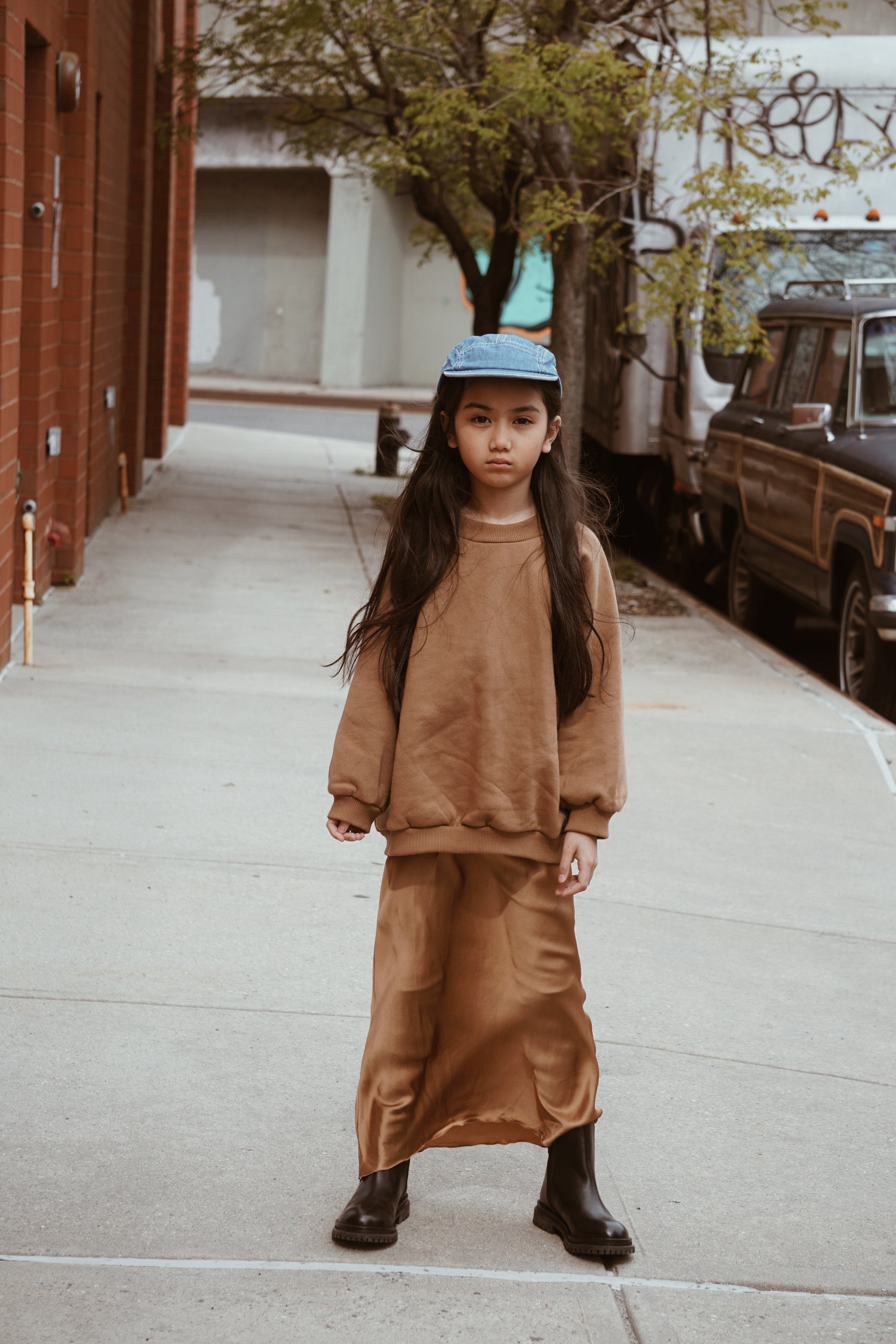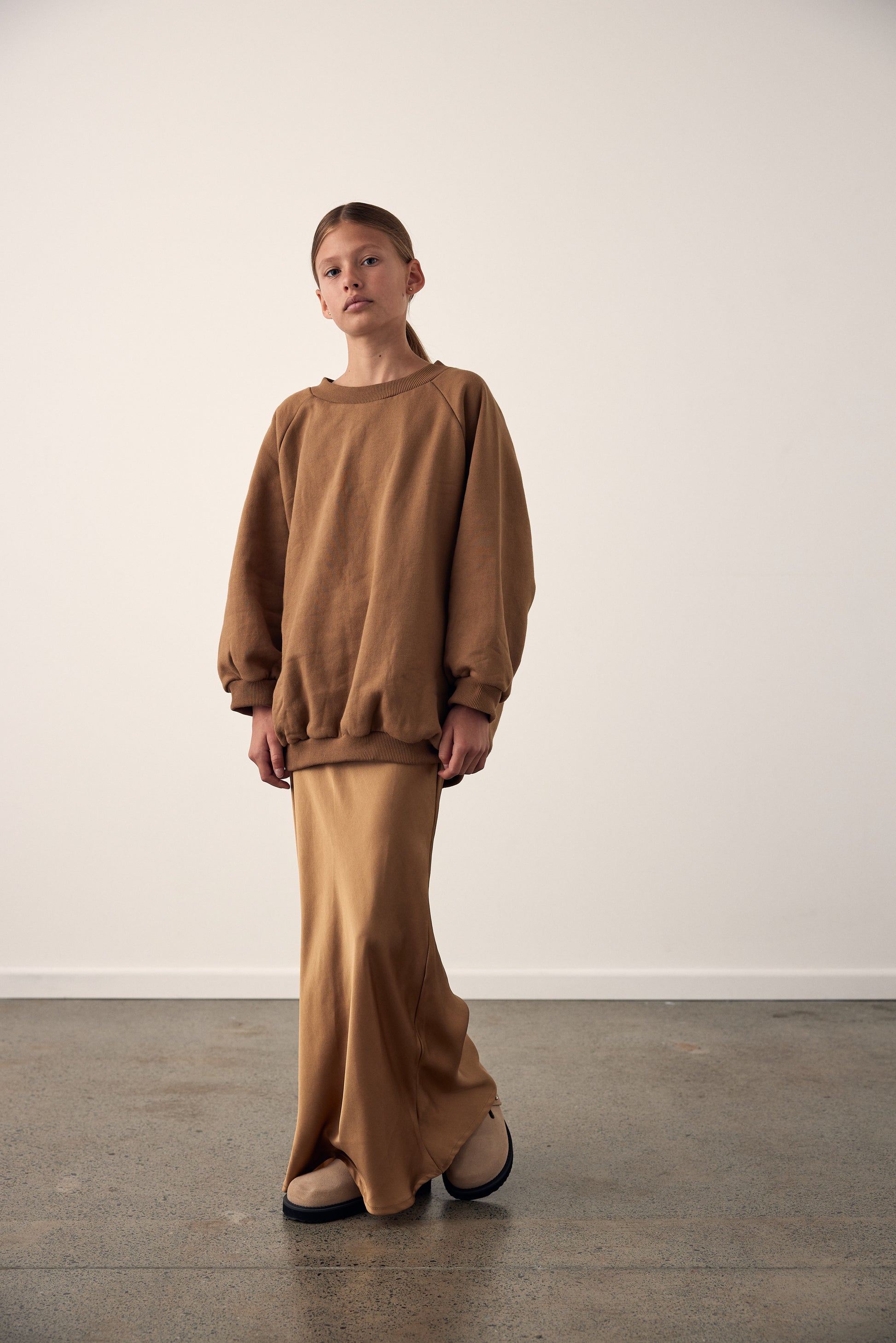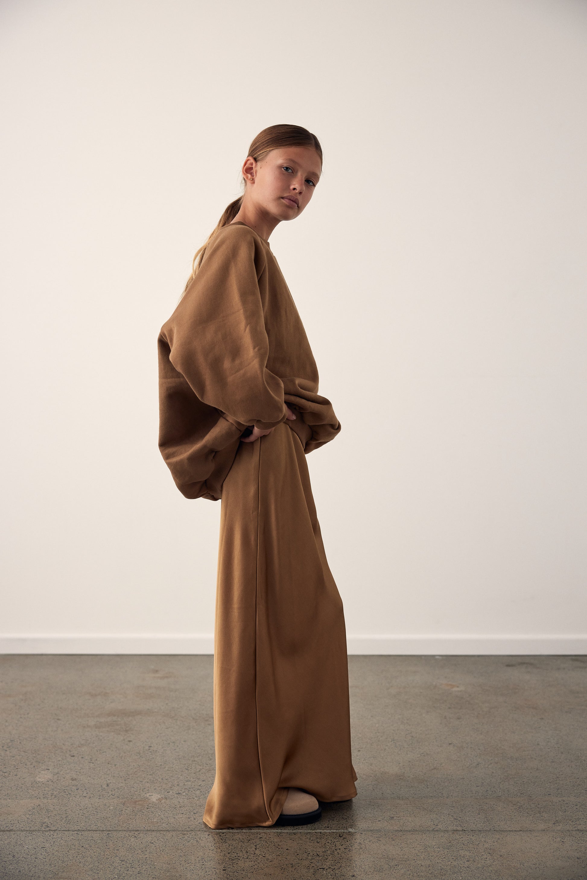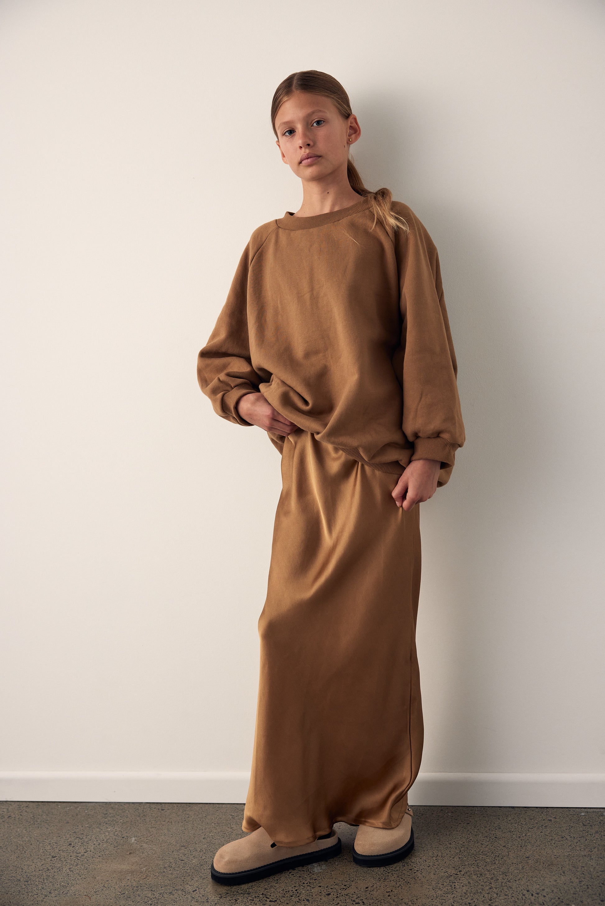 The Lara skirt in citrus is a timeless, bias silhouette cut from silk. Offering a relaxed fit through the body, with a high-rise waist in soft elastic. Hand dyed in our new signature chocolate colour.