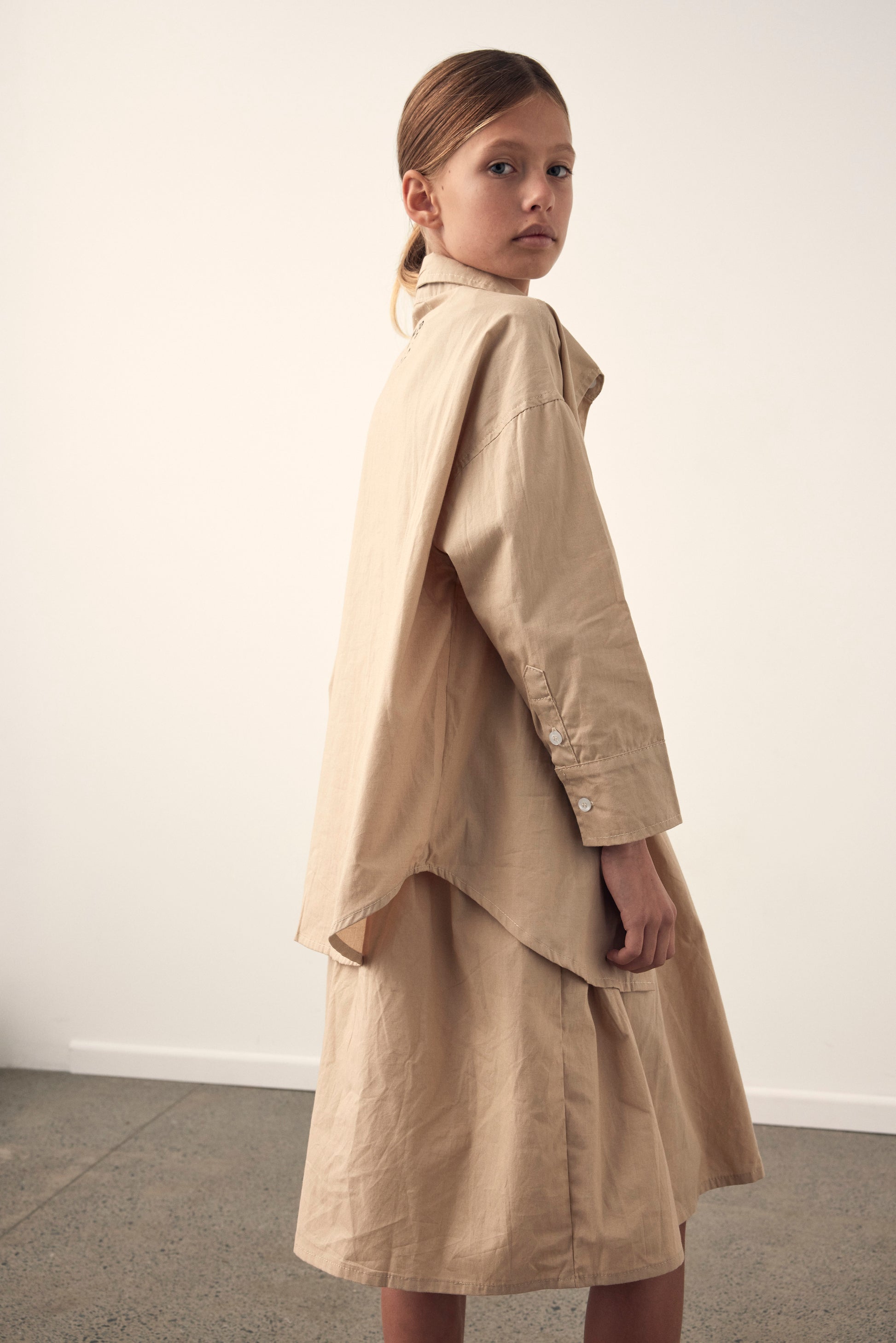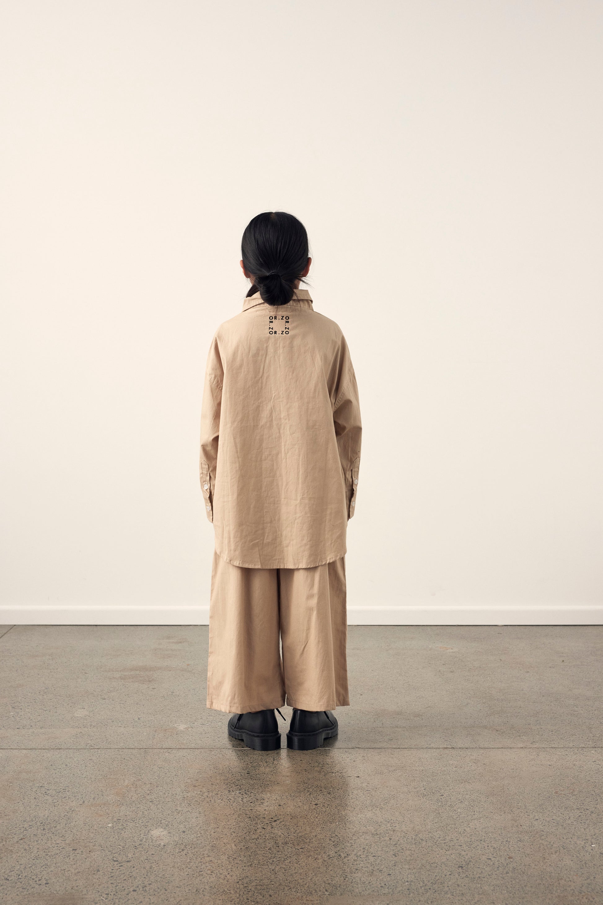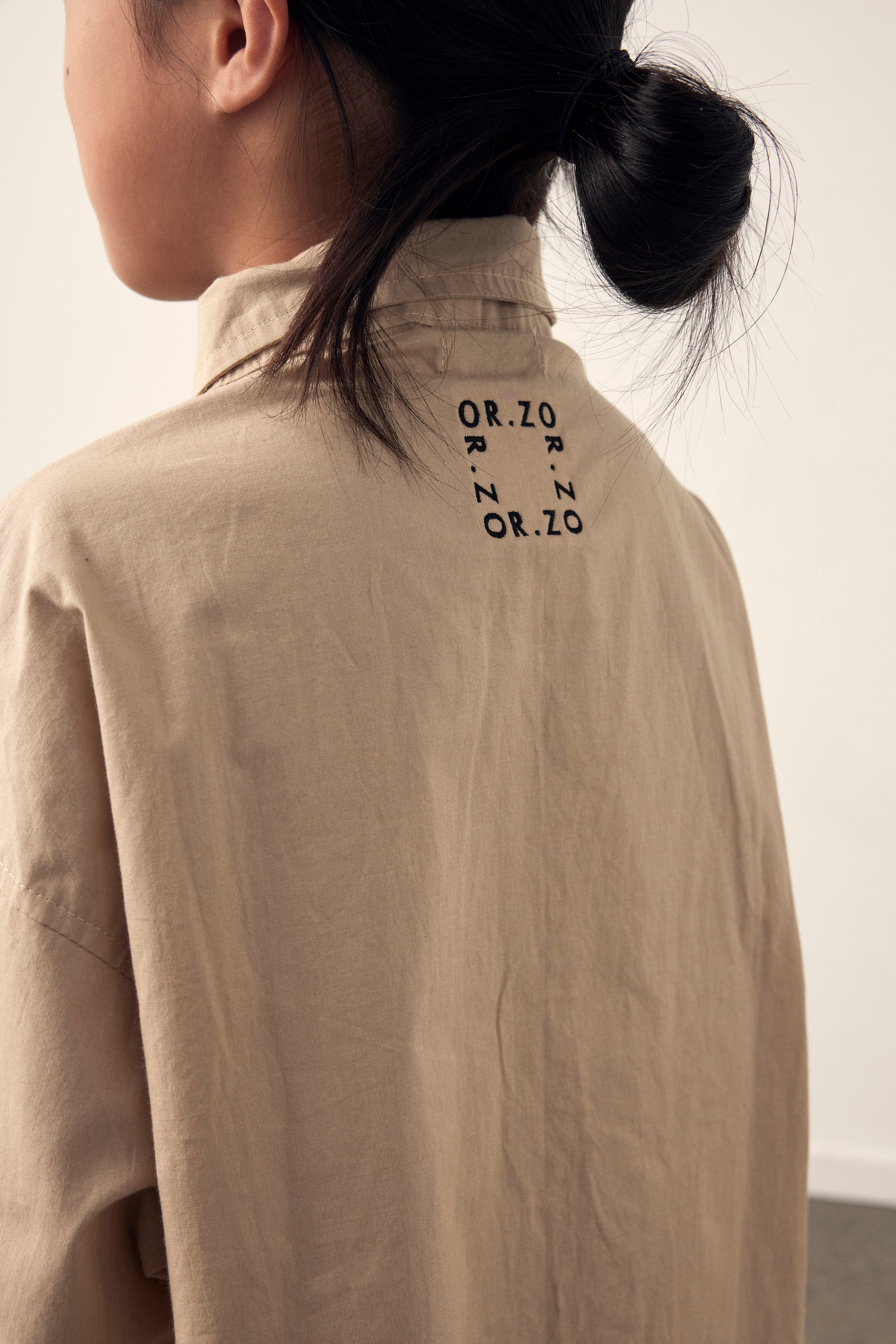 Oversized body shape - High low hemline - Shell button up - Relaxed sleeve - Back neck embroidery - 100% cotton - Ecru colour *hand dyed - Cold hand wash - Unisex style
