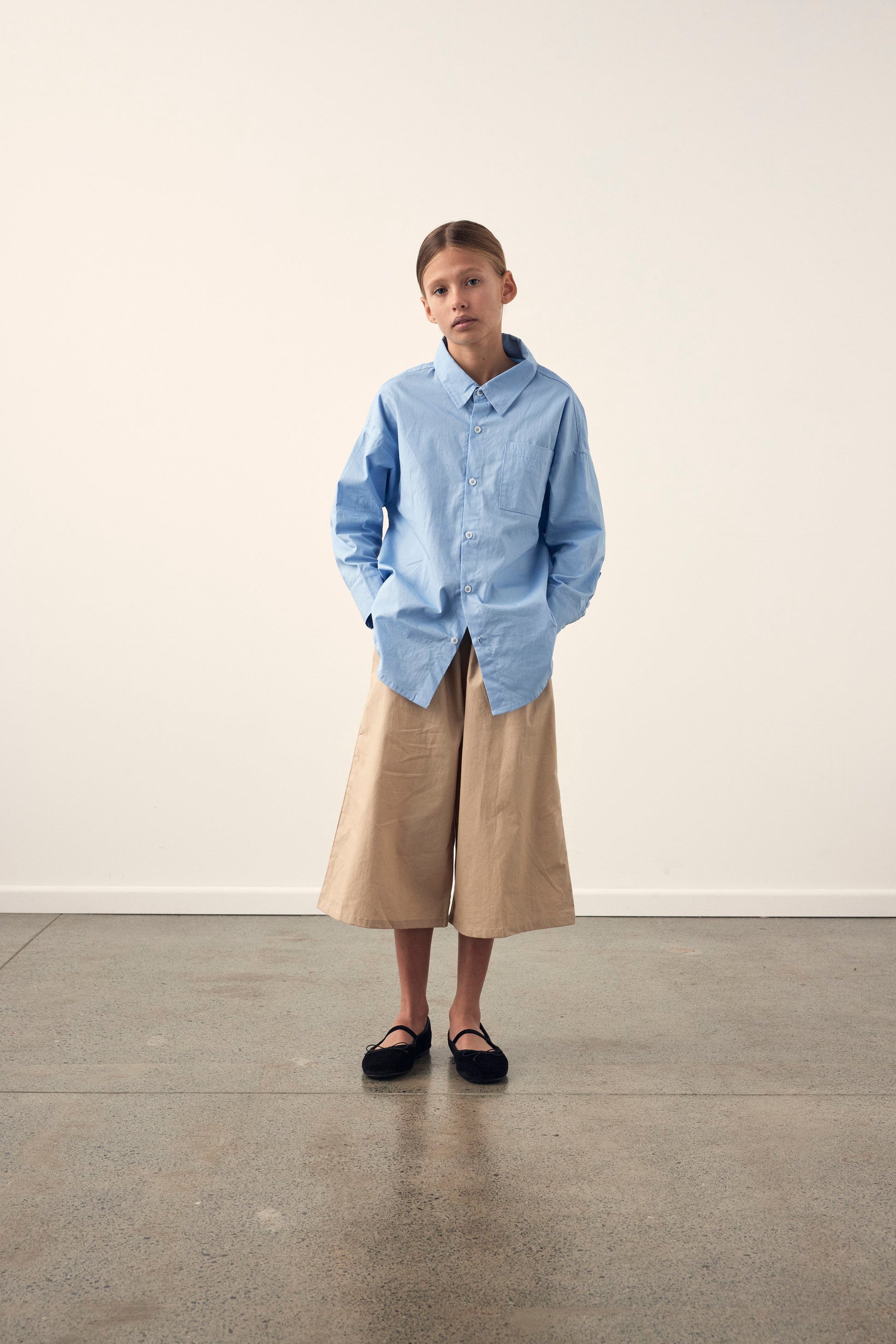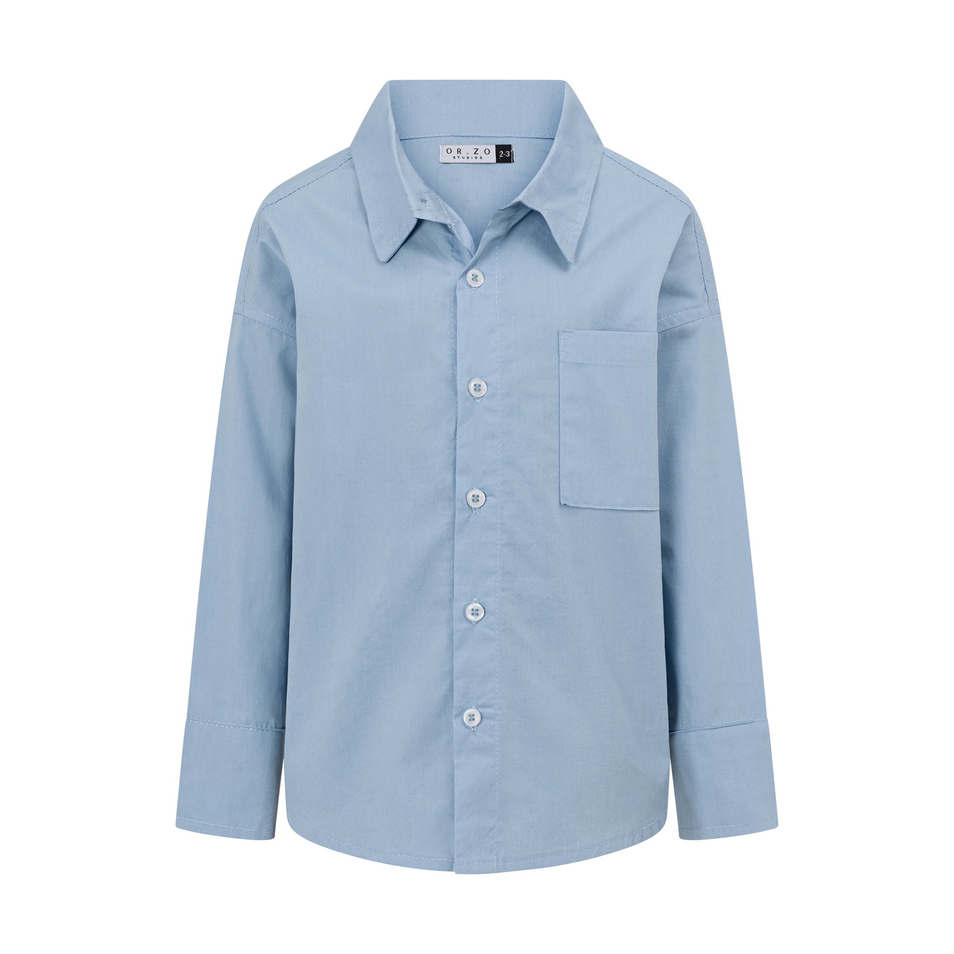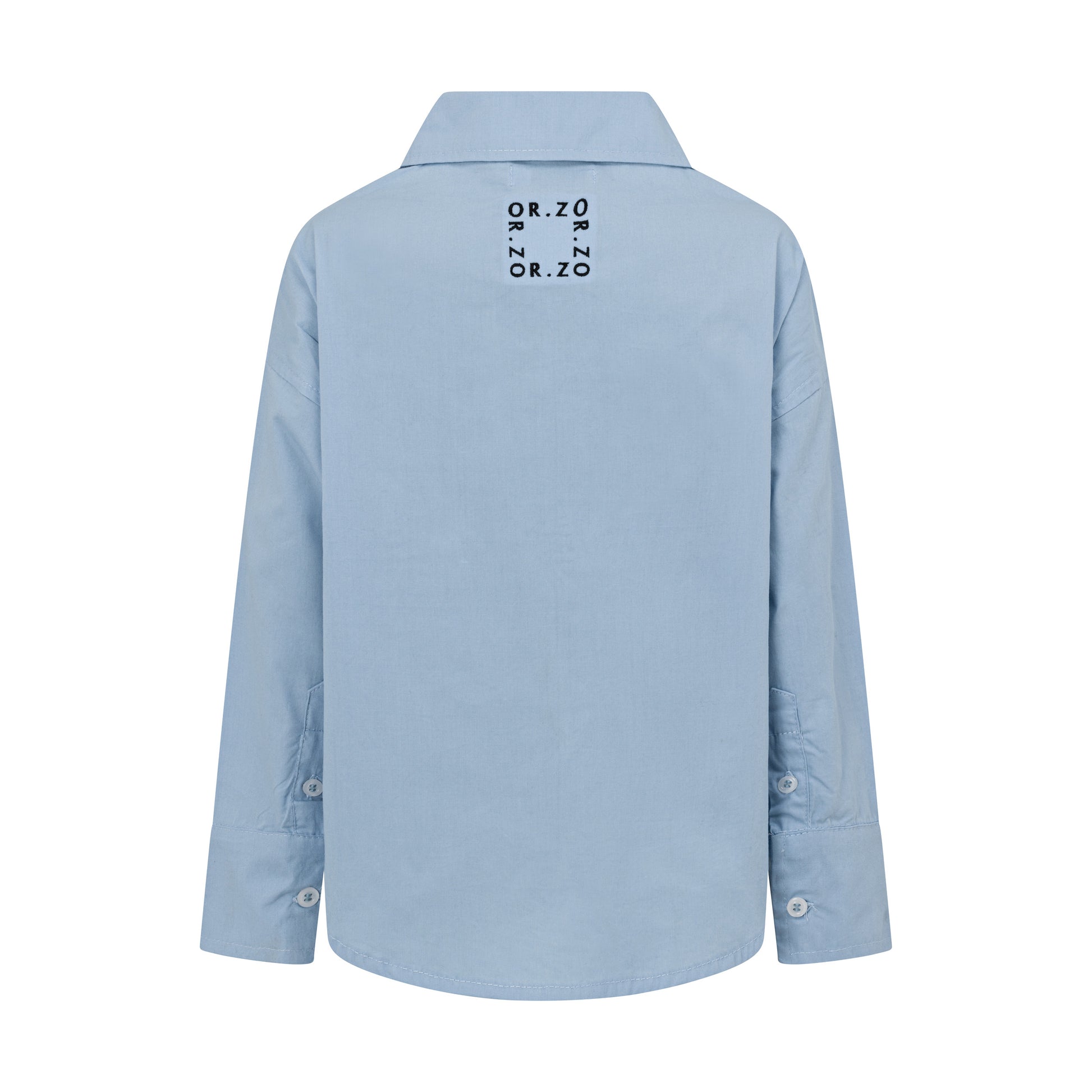 Oversized body shape - High low hemline - Shell button up - Relaxed sleeve - Back neck embroidery - 100% cotton - Sky blue colour - Cold hand wash - Unisex style