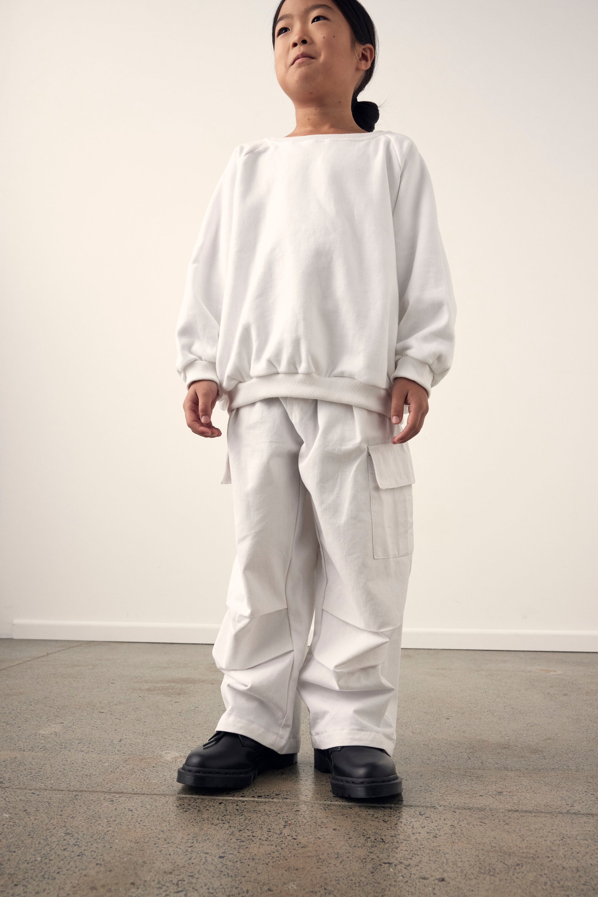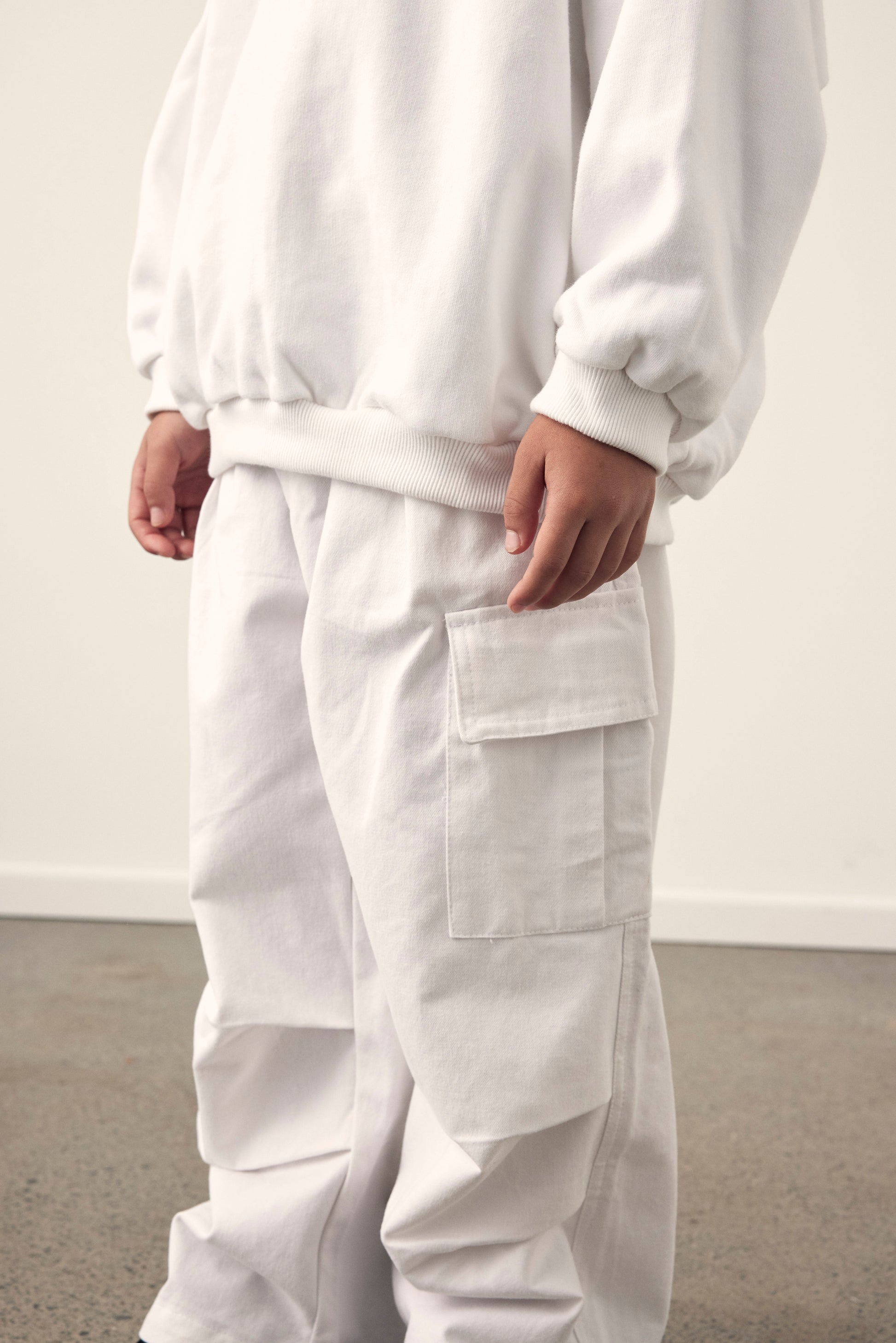 Oversized body shape - Elasticated waist band - Side pockets - 100% cotton - White colour - Cold hand wash - Unisex style