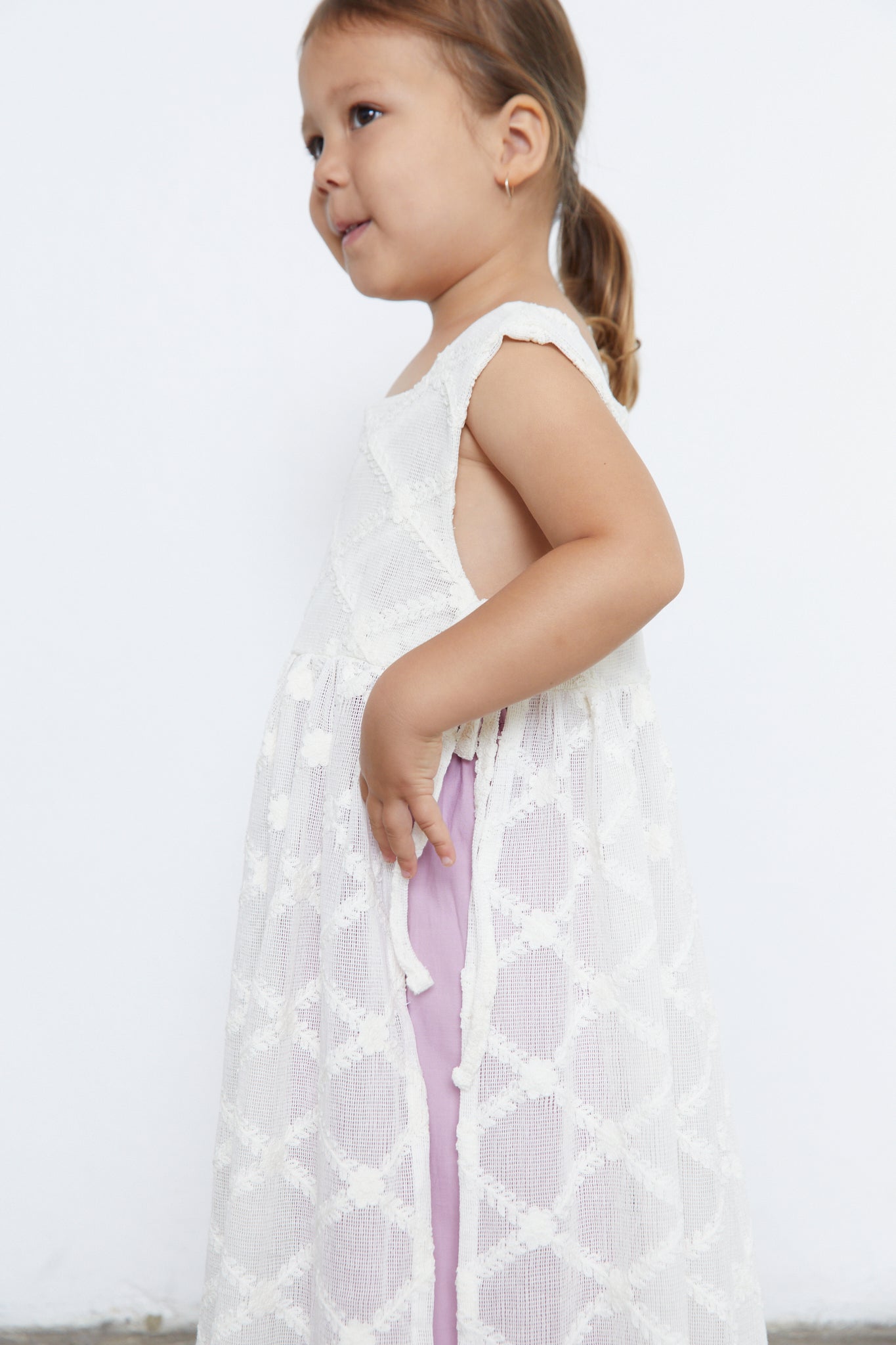 Made from 100% cotton embroidery - fabric has texture and is sheer in the skirt.
