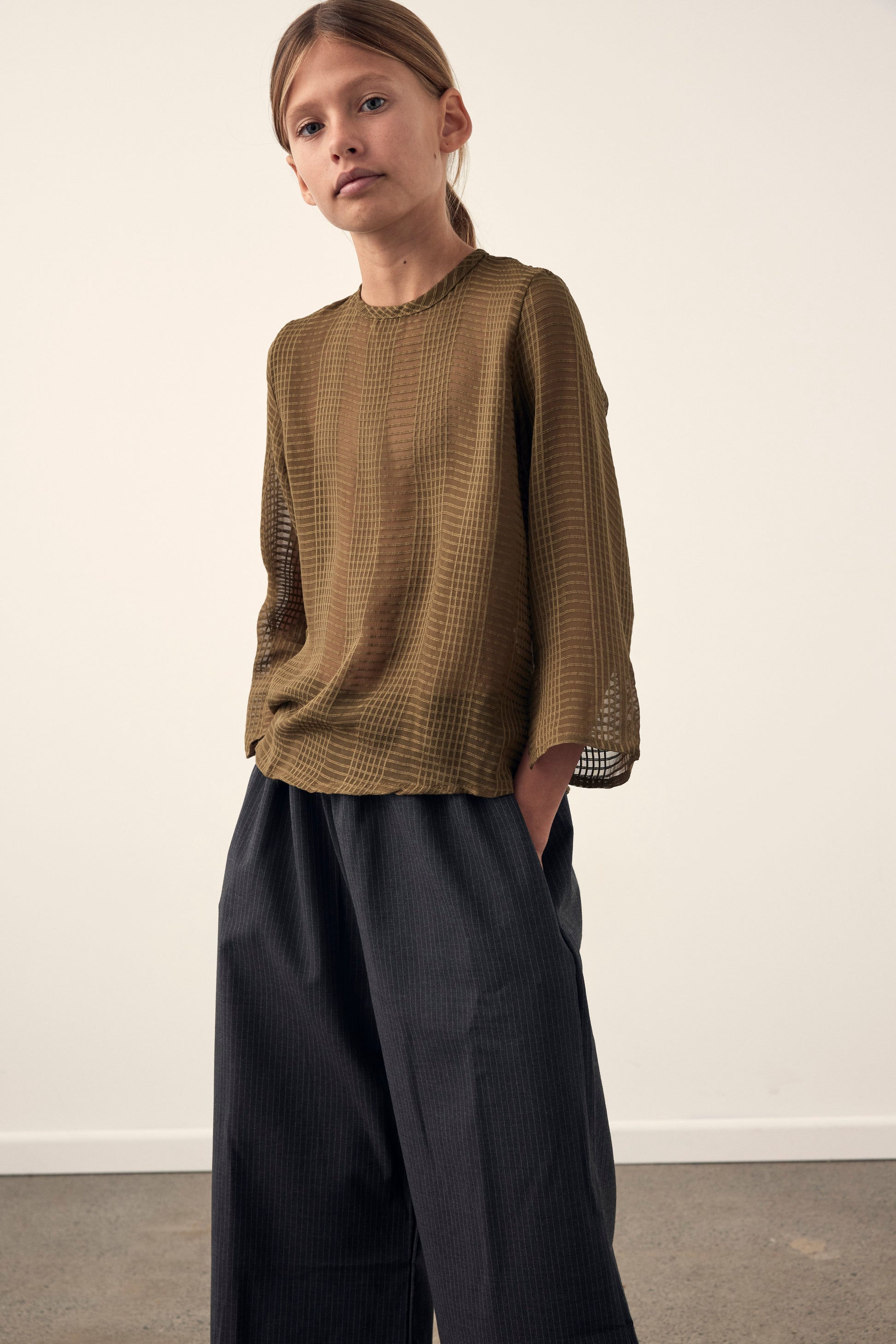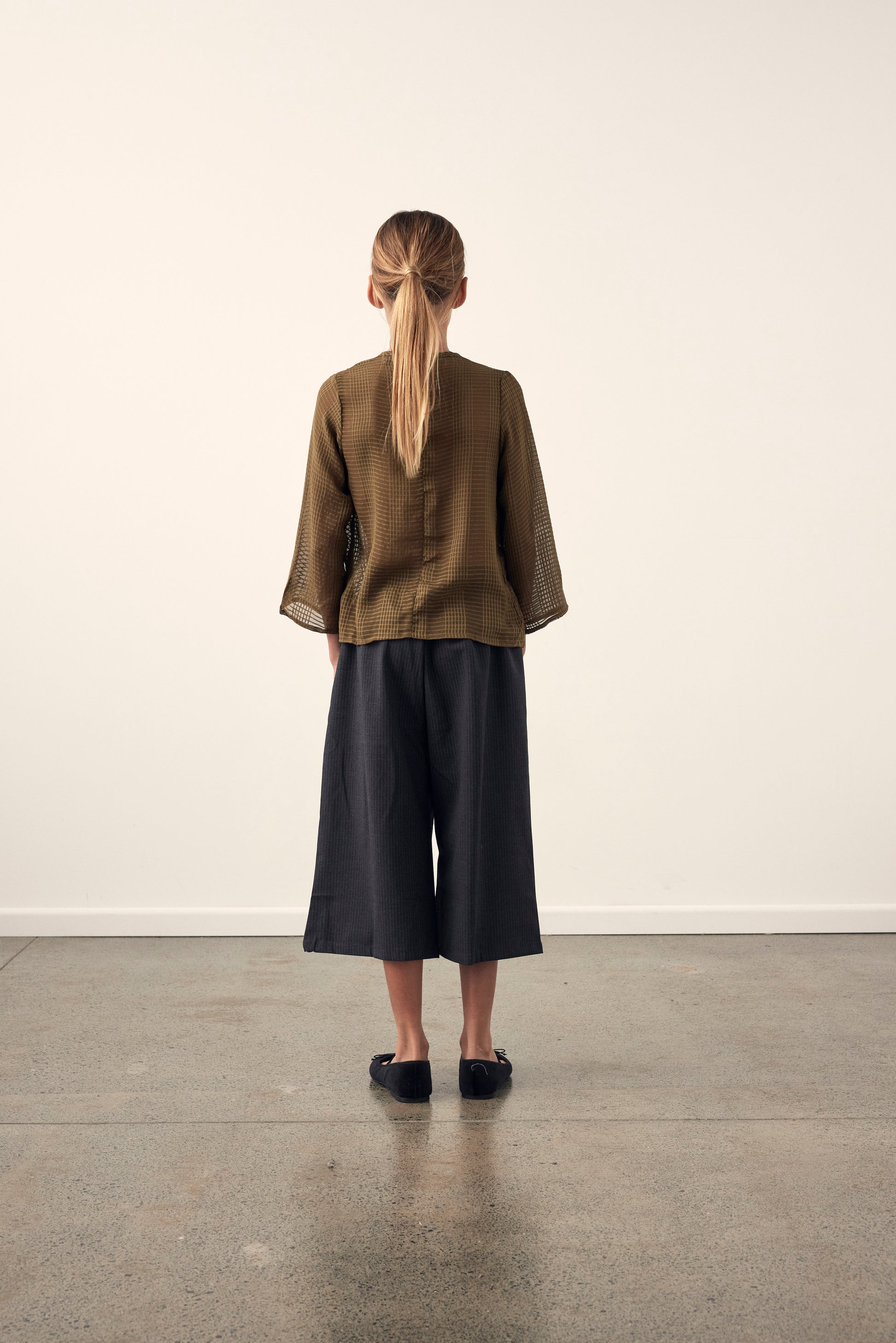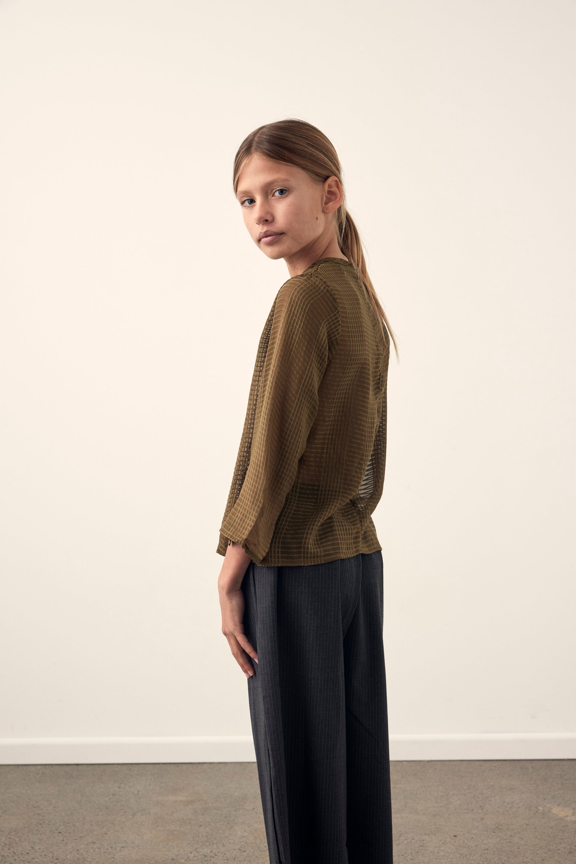 Round neckline - Relaxed body - Long sleeve with cuff spilt detailing - Back zip - 100% silk - Olive - Cold hand wash